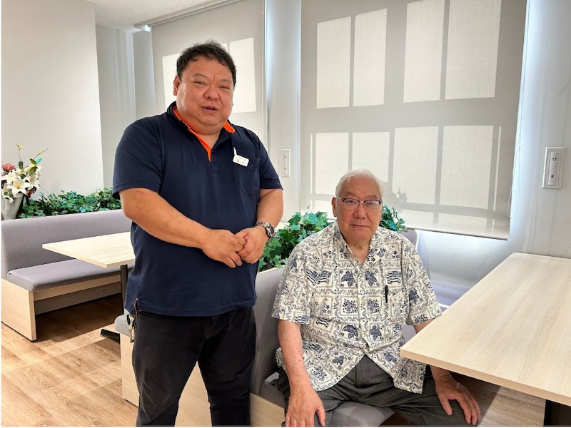 食券を買うところから、注文・受け取りまで、慣れない私はもたついてしまったのですが、ヒルトップには心強い「コンシェルジュ」がいらっしゃいました。フロアに立って学生や利用客たちにどんどん声をかけて明るく親切に誘導してくれる男性は、ヒルトップを運営している株式会社つくばの取締役、坂入忠義さんでした。取締役みずから現場でサポートに入ってくれるというスタイルは学食としては珍しいのではないでしょうか。
