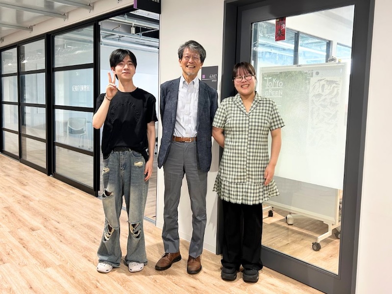 今回は観光まちづくり学部の下村彰男(しもむらあきお)教授の紹介で、下村ゼミから安藤遥夏(あんどうはるか)さんと、前田貴哉(まえだたかや)さんともう一名別のゼミから学生さんが取材に同行してくれました。