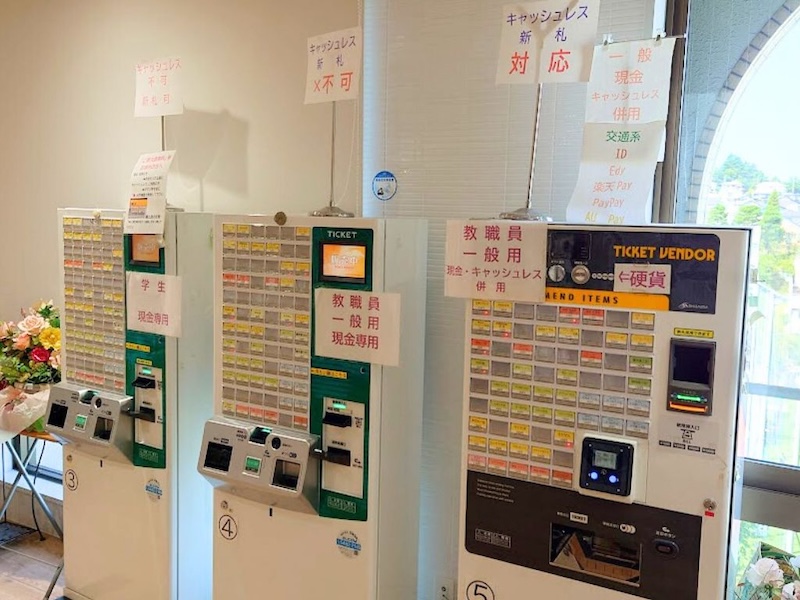 券売機は学生用と一般用があり、キャッシュレス決済などにも対応しています