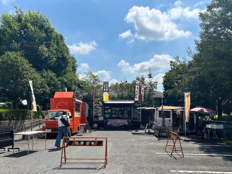 そして、駐車場スペースにはキッチンカーが集います。イートインスペースもあるので、秋風に吹かれながら出来立てのお弁当や飲み物を楽しむのもいいですね。毎回人気の横浜マイスターによる絶品ソーセージや、地場野菜をたっぷり使ったお弁当など何を食べようか目移りしてしまいます。イートインスペースは館内にもあります。