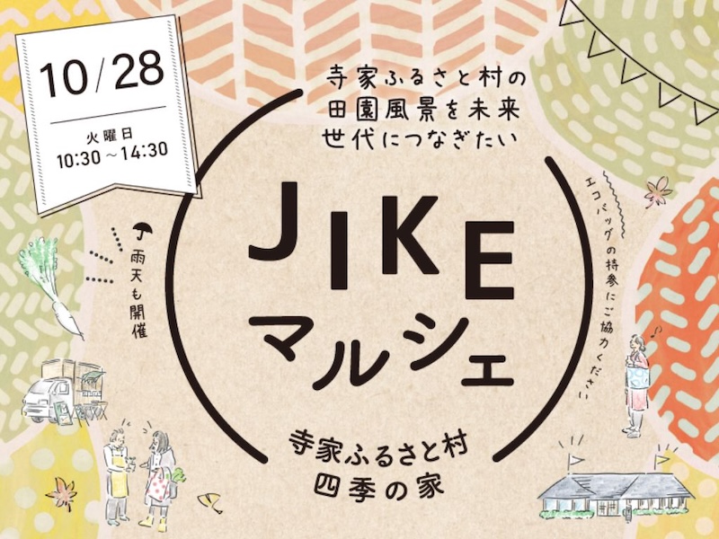 マルシェを楽しんだ後は寺家ふるさと村散策もどうぞ。のどかな田園風景に癒やされながら、JIKEマルシェの目指す「寺家町をはじめ青葉区の地産地消を広めることで、農業を持続可能にしていき、未来世代に寺家ふるさと村の田園風景を残していきたい」という思いを少しでも感じていただけたらうれしいです。