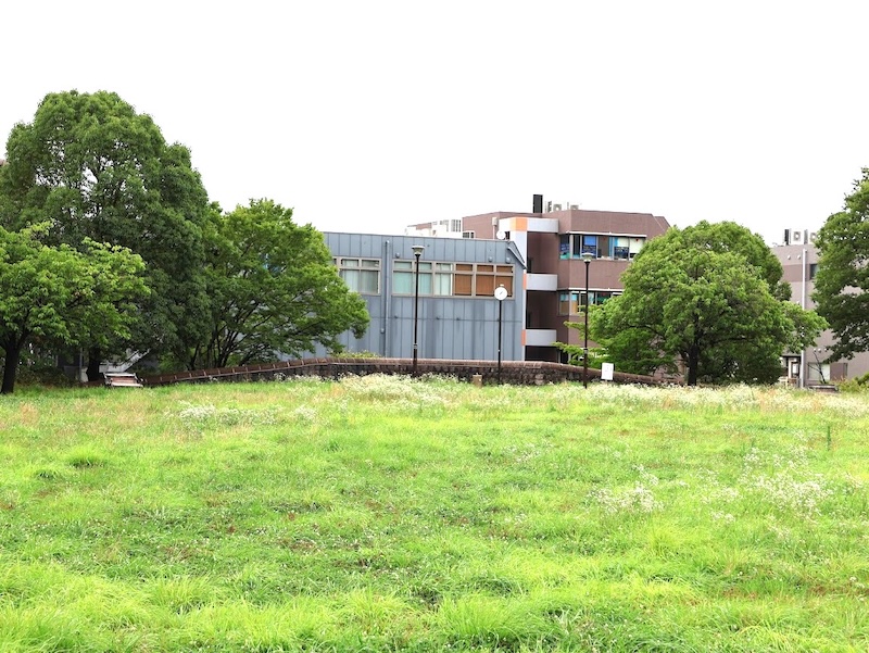 広がる緑と大きな空のそばにあるWA・Lau。天気の良い日には目の前の公園で遊びピクニックをします