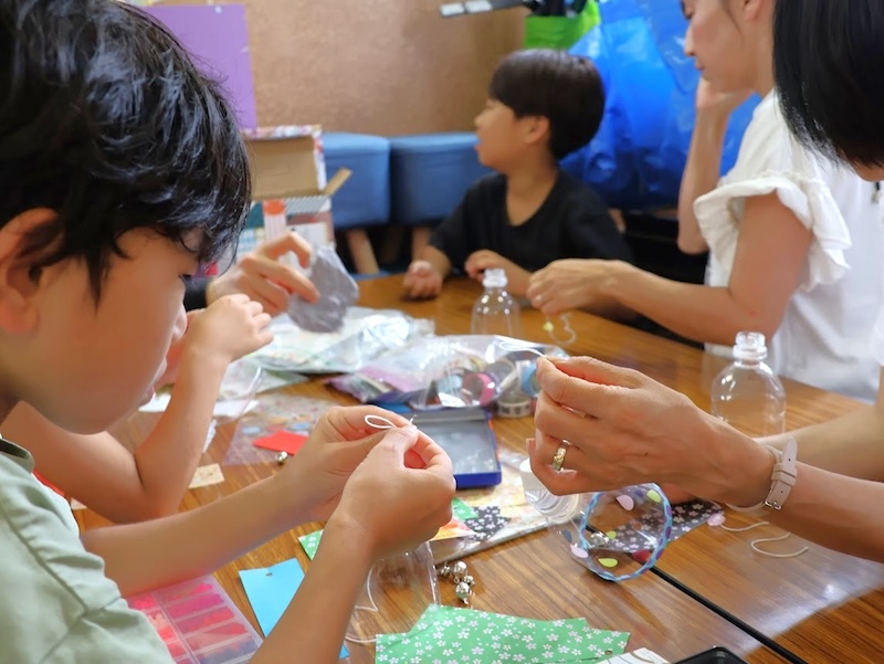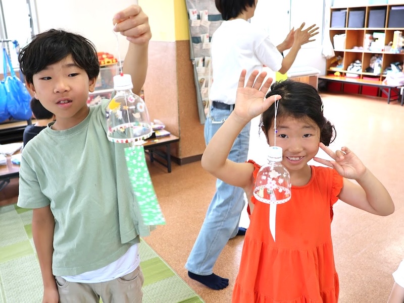 取材した日、子どもたちはペットボトルを使って手作りの風鈴を作っていました。短冊やシールの柄など、選ぶものにも人それぞれ個性が光り、子どもたち自身が自分で選び、自分の手で仕上げていきます。