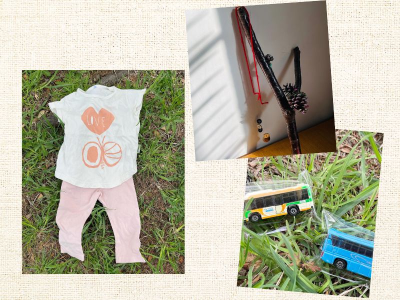 今回は子ども服やおもちゃ、絵本、簡単な工作ワークショップも!(※まつぼっくりの工作品はイメージです)