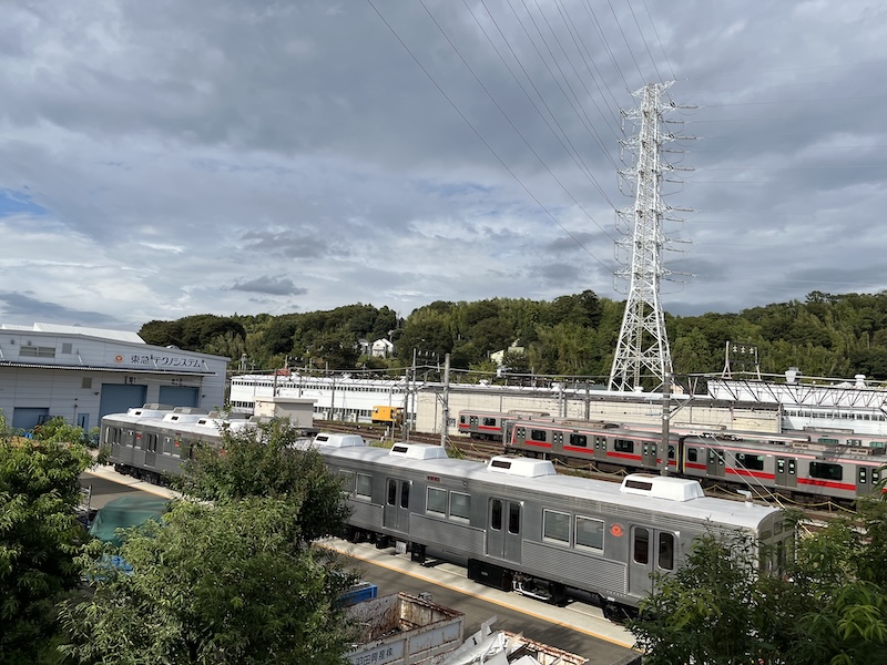 駅を出て、線路に沿って長津田駅方面に歩き始めると間もなく、東急の車両工場が見えてきます。