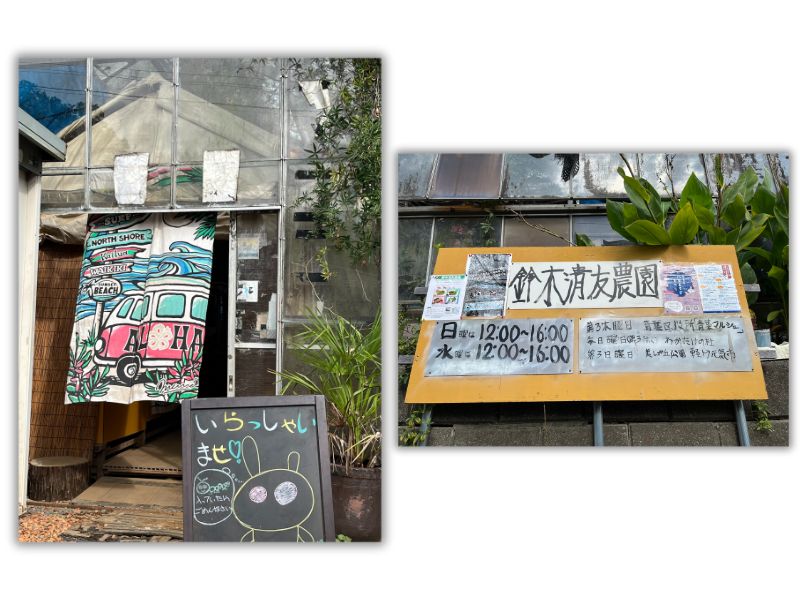 (左)鈴木清友農園入口、(右)鈴木清友農園看板
