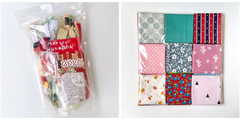 こちらはオンライン限定商品の布と手芸用品がたっぷり詰まった「つめつめセット」とミニカットクロスセット。手芸好きな方への贈り物にもオススメです