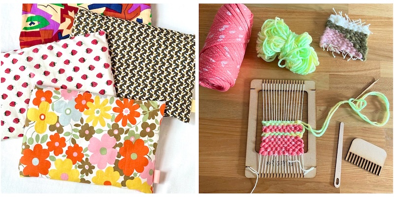 ミニ織り機セット(写真右)は、お子様から大人まで楽しめる人気商品。