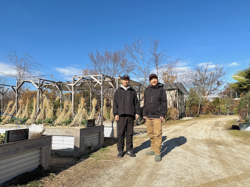 この日は、土EN FARMを運営するen景観設計の代表取締役の中山大輔さん(トップ写真左)、この農園を担当する井田敏也さん(トップ写真右)にお話を伺うことができました。