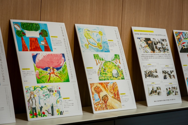 会場には、ワークショップ「50年後、自分たちまちに『あったらいいもの』」のパネルが展示され、中学生のさまざまな作品を見ることができました