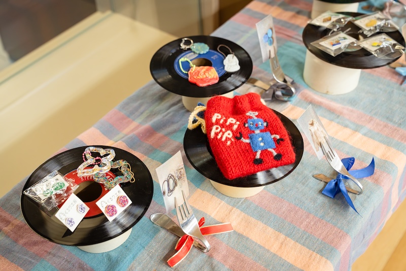 配線コードを利用した水引のアクセサリーや、ペットボトルのふたを加工したキーホルダーなど、あっと驚くようなアップサイクル作品が並べられました