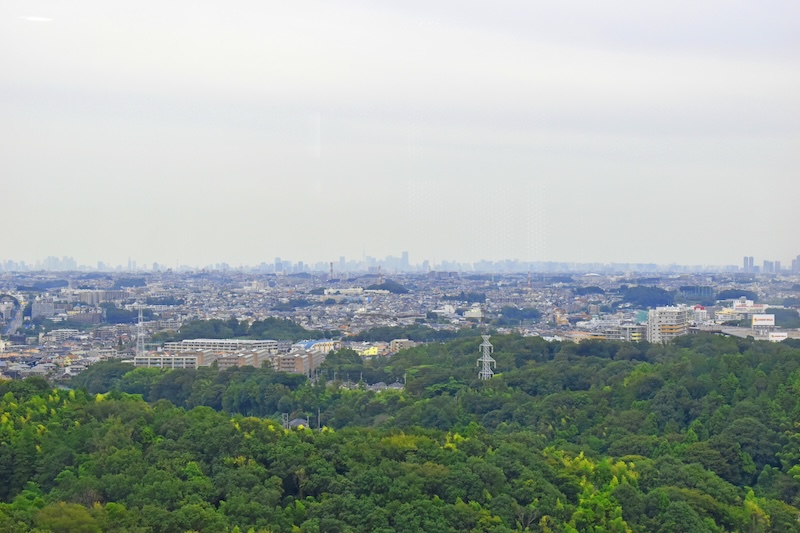 反対側の窓に周ると、みなとみらいのランドマークタワーも発見。坂が多いと感じる横浜市ですが、まっすぐ平らな景色を一望出来て、関東平野を感じることができました。