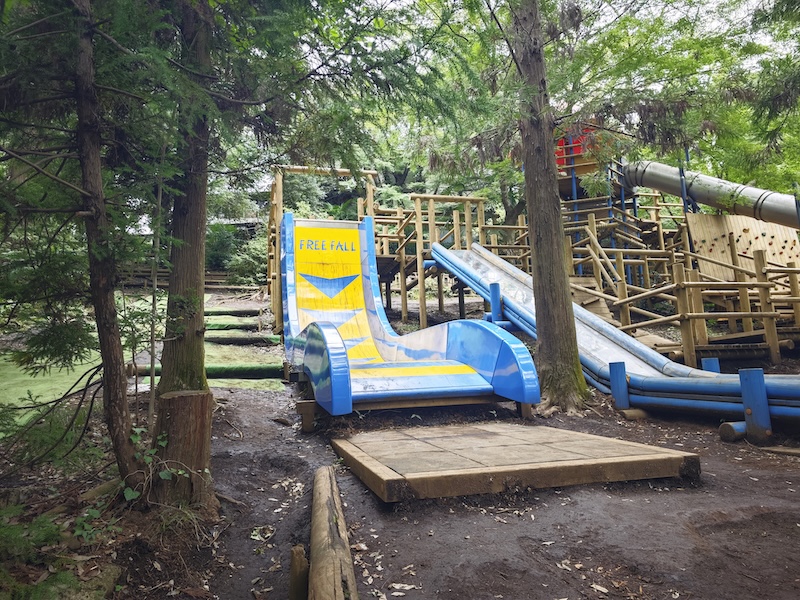そのまま国道246号線沿いに10分程歩くと、何やら森の隙間からアスレチックが見えてきました。
