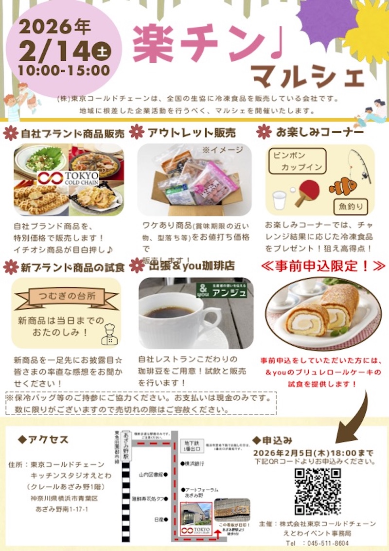 (株)東京コールドチェーンは、全国の生協に冷凍食品を販売している会社です。地域に根差した企業活動を行うべく、マルシェを開催いたします。皆さまのご来場をお待ちしております!