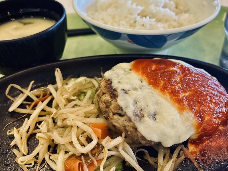 こちらは「チーズハンバーグ イタリアントマトソース」700円。他に和風ハンバーグもありました。メニューは常に開発中で飽きさせないように工夫しているそうです