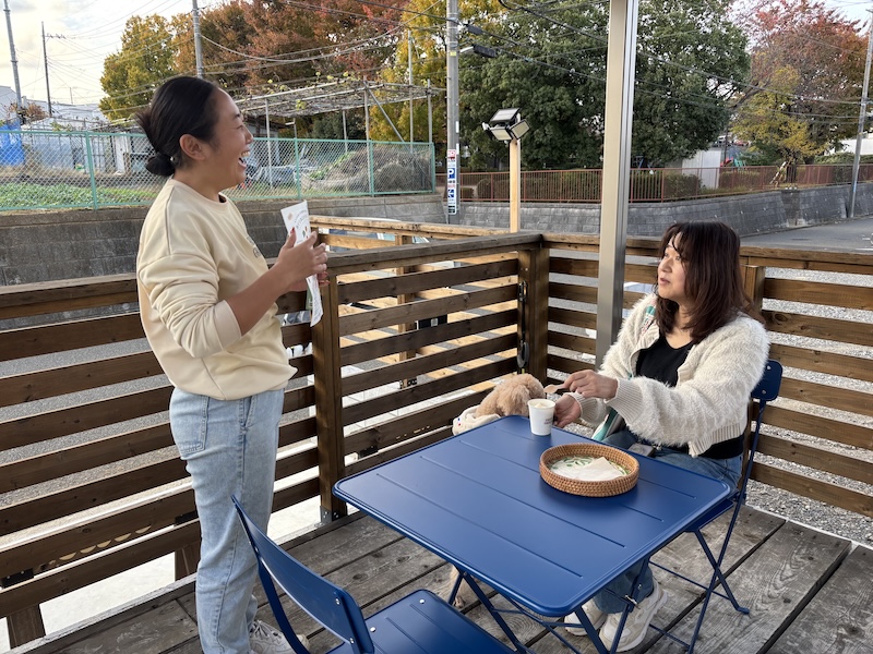 最近は、ウッドデッキにテーブルと椅子も置いてあるので、お客様同士で、「こんな風に料理をしたらおいしかったよ」って話していることもあって、そんな光景が見られるのは私達もうれしいんです。店主とかお客さんとか立場に関係なく、みんなで健康とか食べ物について楽しく話をしたり、ハッピーになれるコミュニティになるといいなと考えているんです。