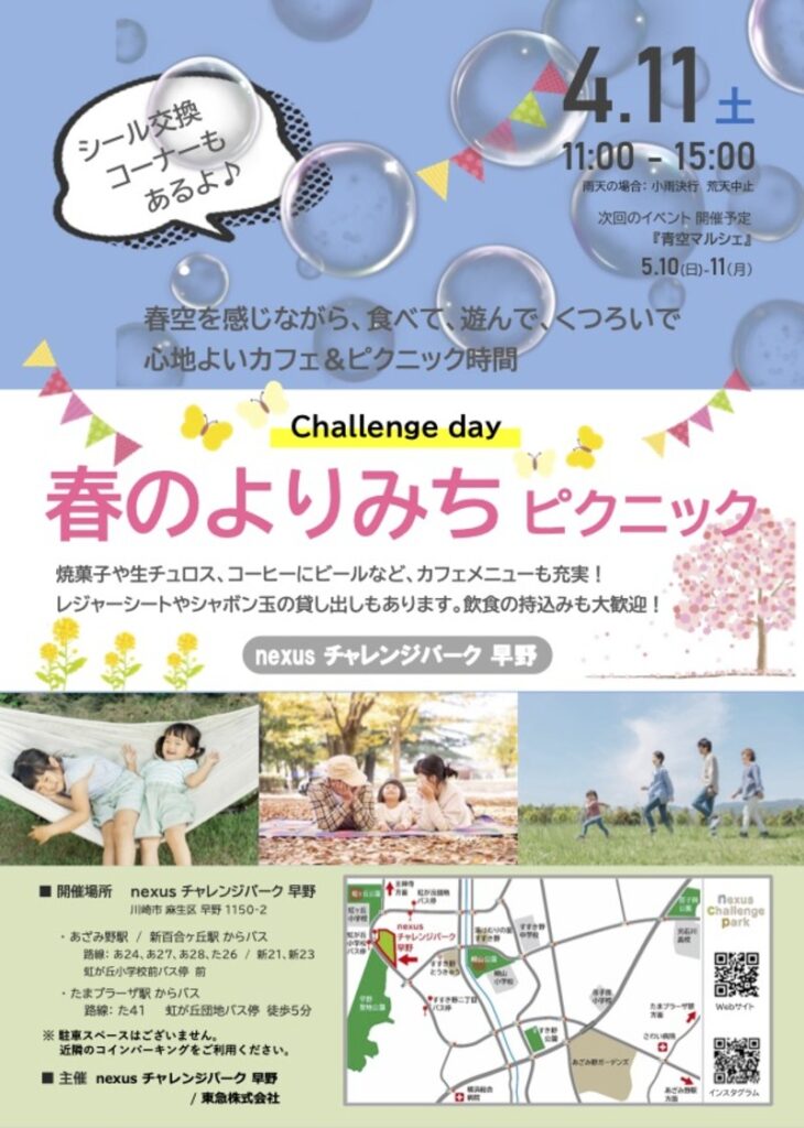 場所:nexusチャレンジパーク早野(川崎市麻生区早野1150-2)※駐車場はありません