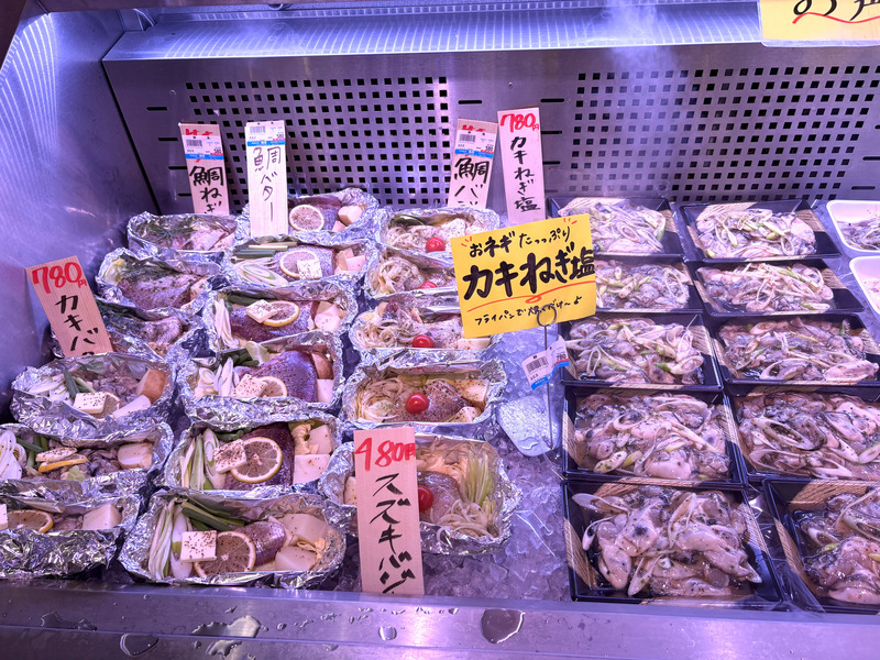 透明感のある魚のお刺身もさることながら、魅力的だと思ったのがホイル焼きセット! 下処理と味付け済みで、フライパンにインするだけで調理がスタートできます。魚屋さんの優しさが詰まったアイデア商品です。調理の仕方がわからない魚も、このホイル焼きからデビューできそうです。