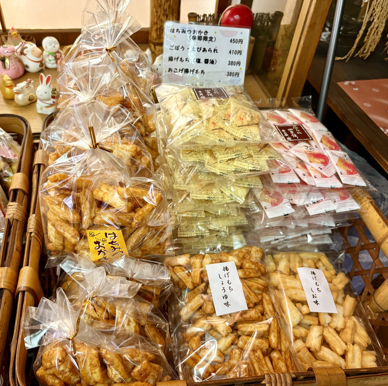 お土産に選んだ、人気のはちみつおかきは冬場だけの限定商品。はちみつの控えめな甘さと程よい堅さで、わが家では子ども三人で争奪戦