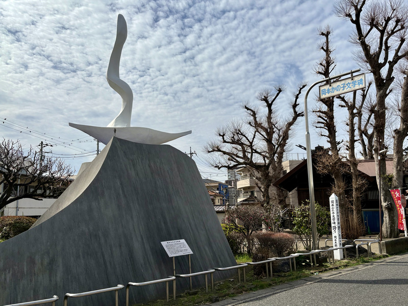 このアート作品は、芸術家である岡本太郎が、母・岡本かの子をしのんで制作したという、「岡本かの子文学碑」です。岡本かの子は大地主の娘として生まれ、幼い頃から結婚するまでの時期を、現在の二子新地周辺で過ごしました。