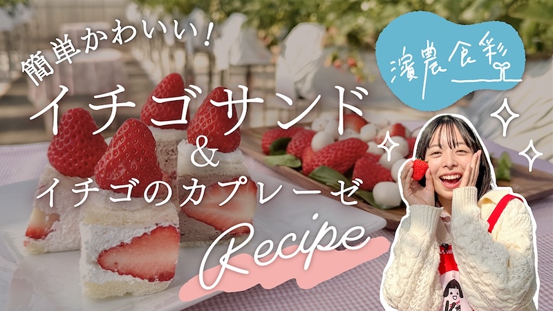 レシピ編では、元バスガイドだったという妻・麻菜美さんの流暢な案内で、超完熟イチゴを使った「イチゴサンド」と「カプレーゼ」をご紹介しています。