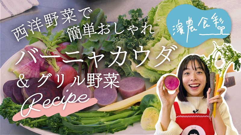 後編では、村田さんが栽培するラディッシュやケール、カラフル人参やビーツなど彩りが美しい西洋野菜を使った超簡単バーニャカウダと、簡単にフライパンでできる西洋野菜のグリルのレシピを紹介しています。