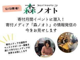 マンスリーファンディング挑戦中!トーク&広報イベント「寄付月間イベントに潜入!寄付メディア『森ノオト』の情報発信の今をお見せします」を12/13に開催します