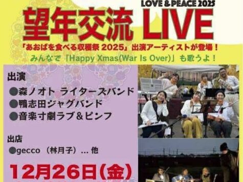 「あおばを食べる収穫祭」で出会った仲間が再集結「LOVE&PEACE2025 望年交流LIVE」@たまプラーザ3丁目カフェ